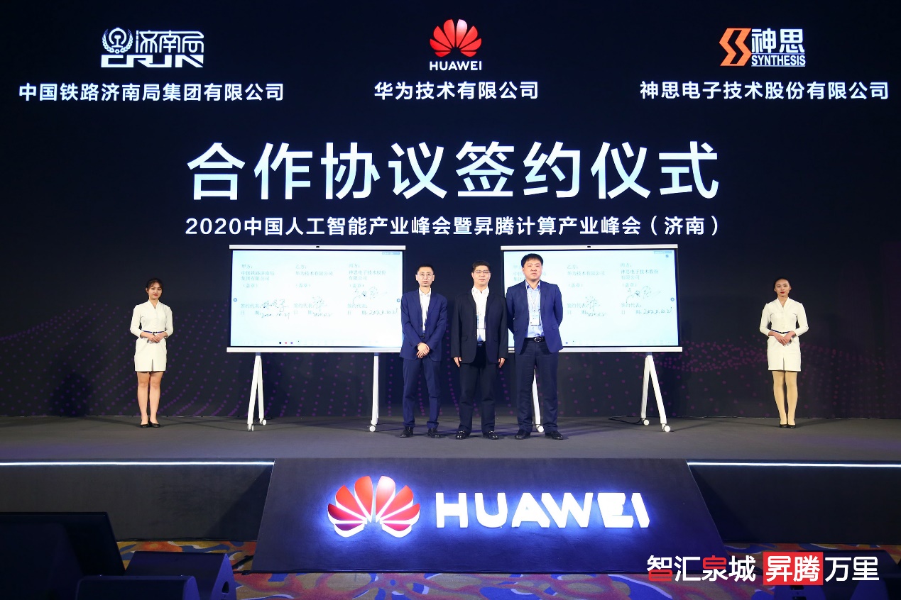 峰會現(xiàn)場,中鐵濟南局集團、華為、神思電子三方共同簽署合作協(xié)議,針對鐵路行業(yè)數(shù)字化、信息化、智能化等方面展開深度合作,共同推動智能視頻監(jiān)控系統(tǒng)在中鐵濟南局集團全面應用,打造創(chuàng)新的綜合智能與信息系統(tǒng),為鐵路安全運行保駕護航。